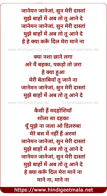 Lyrics of Kya Nasha Chhane Laga - जानेमन जानेजां, सुन मेरी दास्तां