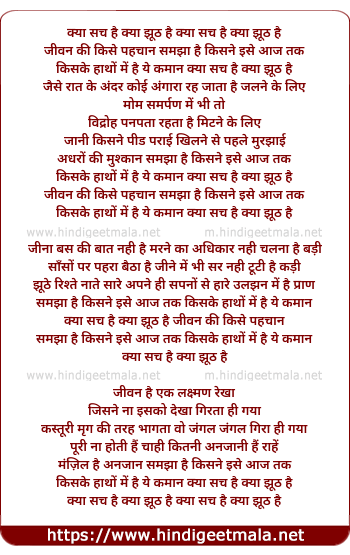 Lyrics of Kya Sach Hai Kya Jhooth Hai Jiwan Ki Kise Pahchan - क्या सच है क्या झूठ है जीवन की किसे पहचान
