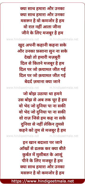 Lyrics of Kya Sath Hamara Aur Inka - क्या साथ हमारा और इनका