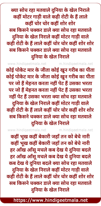kya soch raha matwale dunia ke khel nirale