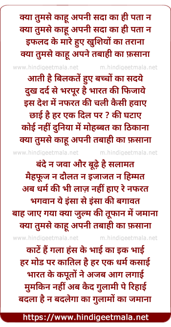 Lyrics of Kya Tumse Kahu Apni - क्या तुमसे काहू अपनी