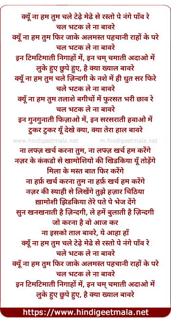 kyu na hum tum chale tedhe medhe se rasto pe nange paav re