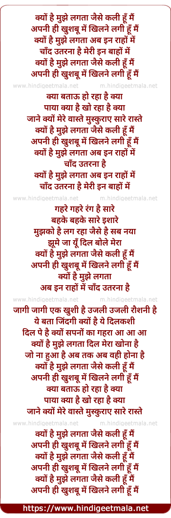 Lyrics of Kyon Hai Mujhe Lagta - क्यों है मुझे लगता