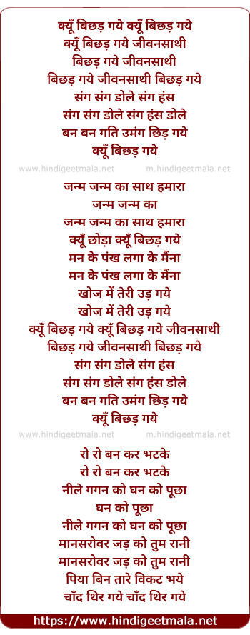 Lyrics of Kyu Bichad Gaye Jivansathi Bichad Gaye - क्यूँ बिछड़ गये क्यूँ बिछड़ गये