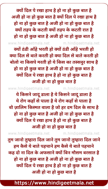 Lyrics of Kyu Dil Pe Rakha Hath Hai - क्यों दिल पे रखा हाथ है