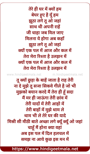 Lyrics of Kyu Ek Pal Mein - क्यों एक पल में