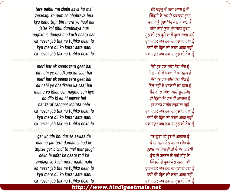 Lyrics of Kyu Mere Dil Ko Karaar Aata Nahi - क्यूँ मेरे दिल को करार आता नहीं