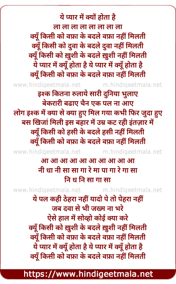 Lyrics of Kyun Kisi Ko Vafa Ke Badle Vafa Nahi Milti - क्यूँ किसी को वफ़ा के बदले वफ़ा नहीं मिलती