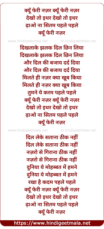 Lyrics of Kyun Pheri Nazar Dekho To Idhar - क्यूँ फेरी नज़र क्यूँ फेरी नज़र