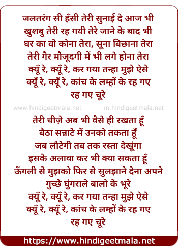 kyun re, kyun re, kanch ke lamho ke reh gaye