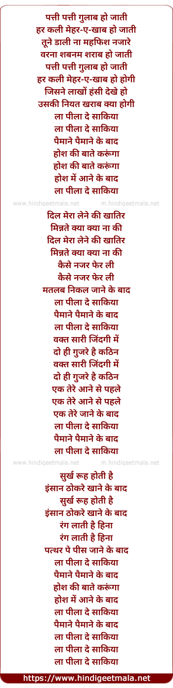 Lyrics of La Pila De Saqiya - ला पीला दे साकिया