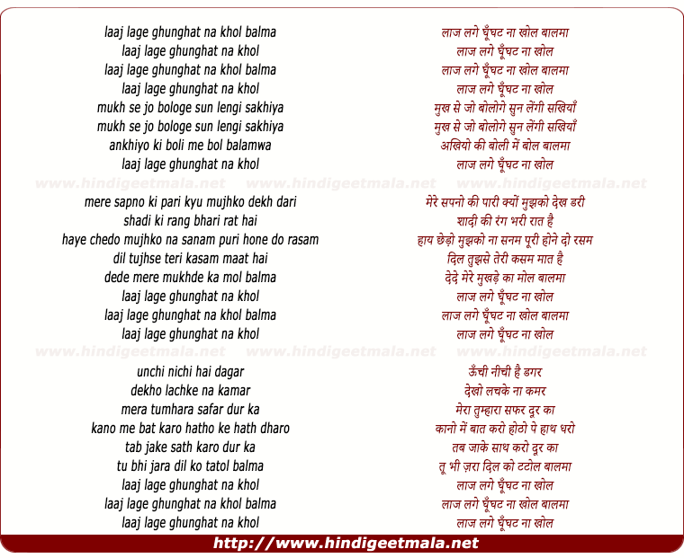 Comments for lyrics of song "Laaj Lage Ghunghat Na Khol"