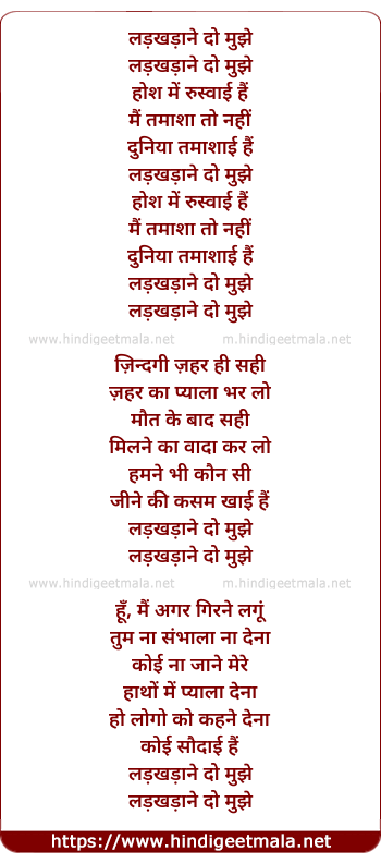 Lyrics of Ladkhadane Do Mujhe - लड़खड़ाने दो मुझे