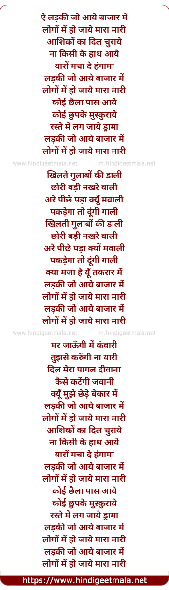 Lyrics of Ladki Jo Aaye Bazar Me - ऐ लड़की जो आये बाजार में