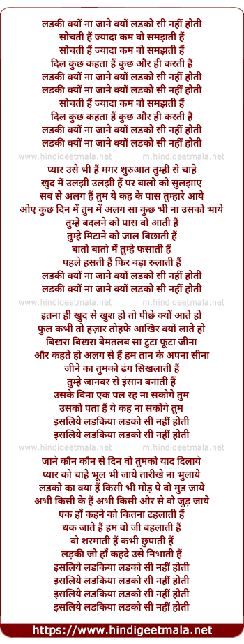 Lyrics of Ladki Kyon Na Jane Kyon - लड़की क्यों ना जाने क्यों