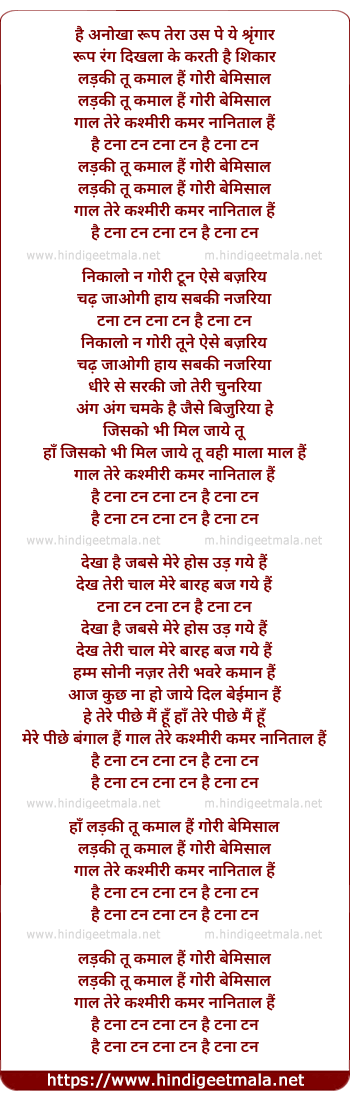 Lyrics of Ladki Tu Kamal Hai - लड़की तू कमाल हैं