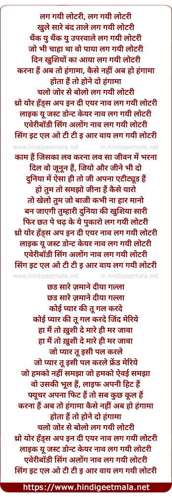 Lyrics of Lag Gayi Lottery Khule Saare Band Taale - लग गयी लोटरी खुले सारे बंद ताले