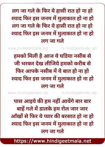 Lyrics of Lag Ja Gale (Acoustic) - लग जा गले