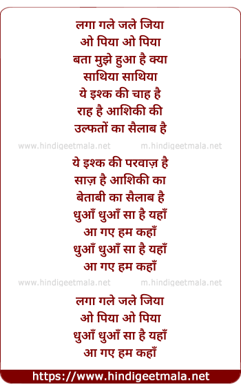 Lyrics of Laga Gale Jale Jiya - लगा गले जले जिया