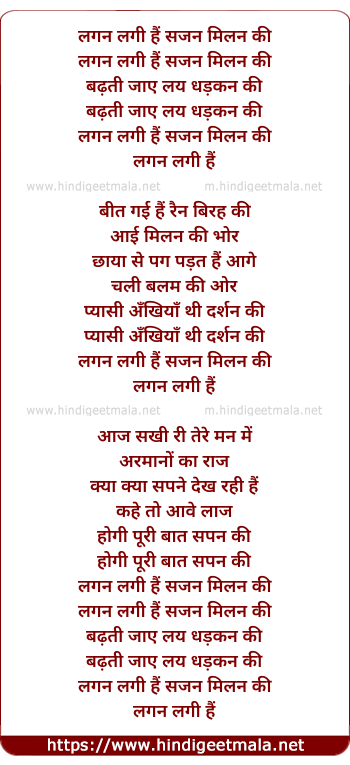 Lyrics of Lagan Lagi Hai Sajan Milan Ki - लगन लगी हैं सजन मिलन की