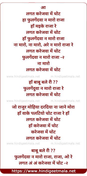Lyrics of Lagat Karejawaa Men Chot Phulagendawaa Na Maaro Raajaa - आ
