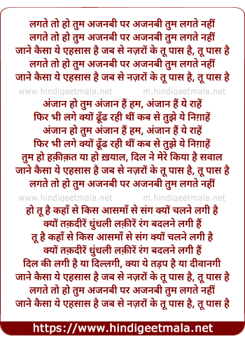 Lyrics of Lagate To Ho Tum Ajanabi Par Ajanabi Tum Lagate Nahin - लगते तो हो तुम अजनबी पर अजनबी तुम लगते नहीं