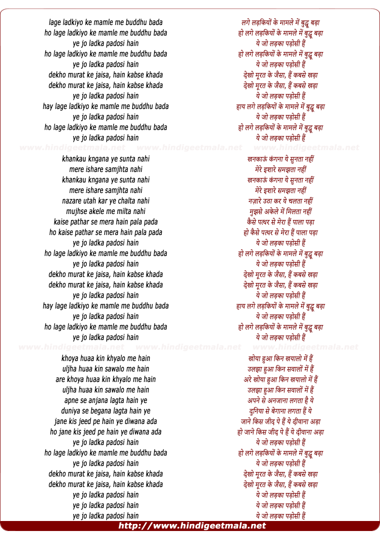 Lyrics of Lage Ladkiyo Ke Mamle Me - लगे लड़कियों के मामले में