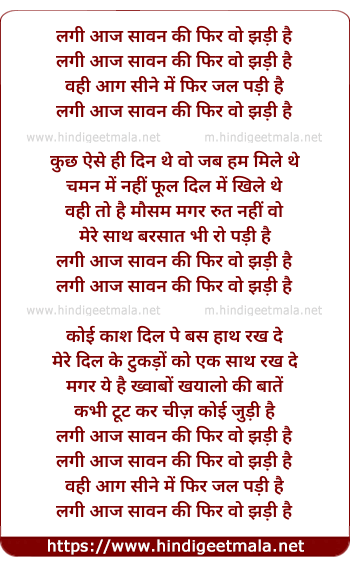 Lyrics of Lagee Aaj Sawan Kee Phir Woh Jhadee Hain - लगी आज सावन की फिर वो झड़ी है