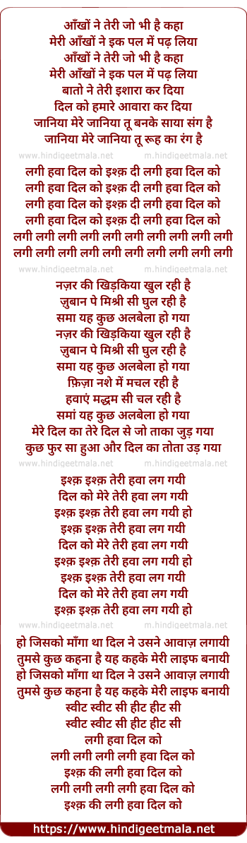 Lyrics of Lagi Hawa Dil Ko - लगी हवा दिल को