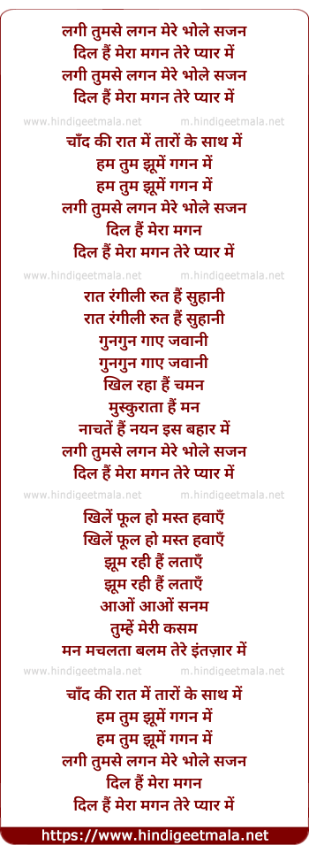 Lyrics of Lagi Tumse Lagan Mere Bhole Sajan - लगी तुमसे लगन मेरे भोले सजन