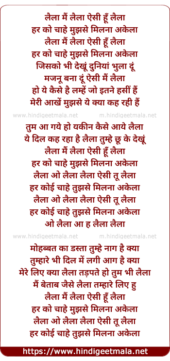 Lyrics of Laila Main Laila - लैला मैं लैला