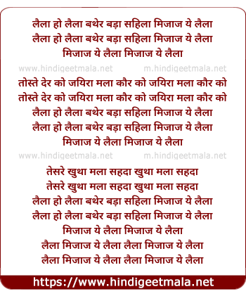 Lyrics of Laila O Lailaa - लैला हो लैला बथेर बड़ा सहिला मिजाज ये लैला