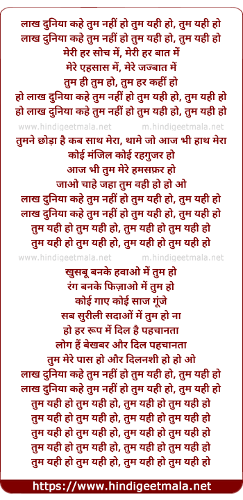 lakh duniya kahe tum nahi ho tum yahi ho, tum yahi ho