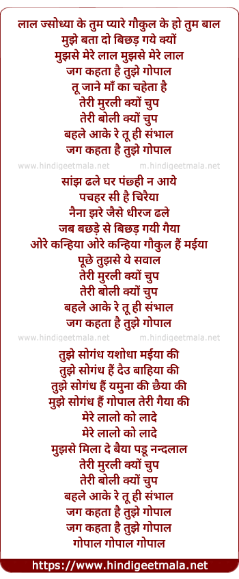 Lyrics of Lal Jasoda Ke Tum Pyar
