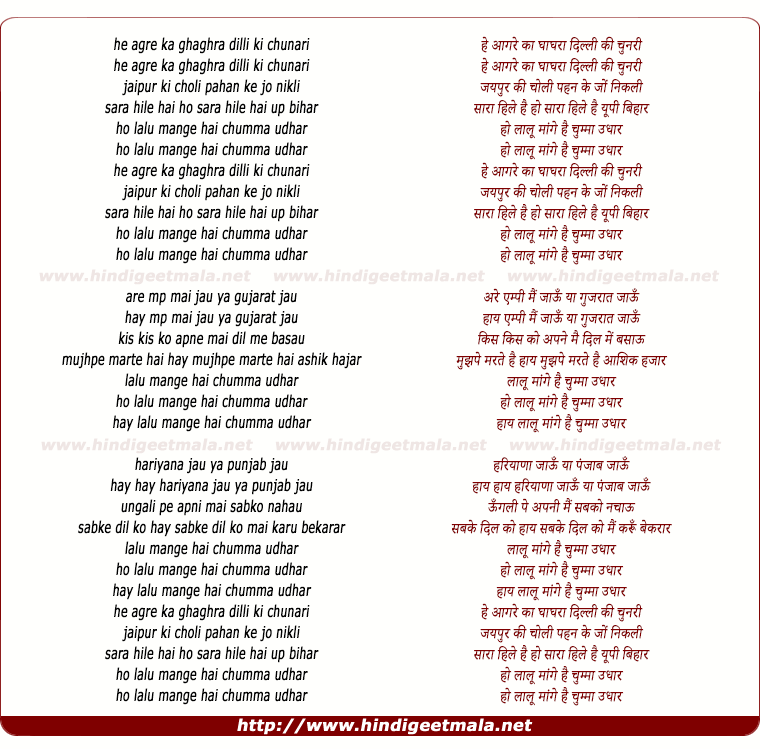 Lyrics of Lalu Mange Chumma Udhar - लालू मांगे चुम्मा उधार