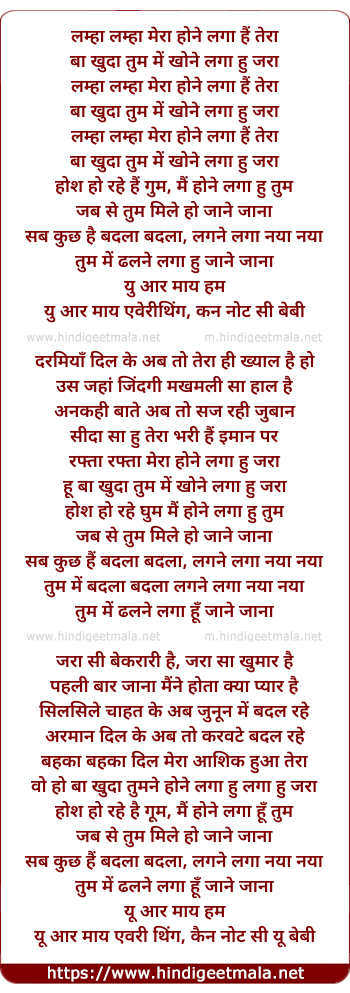 Lyrics of Lamhaa Lamhaa (Remix) - लम्हा लम्हा मेरा होने लगा हैं तेरा