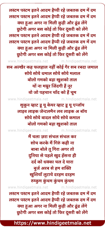 lashtam pashtam itne aadam happy rahe jabtak dam me dam