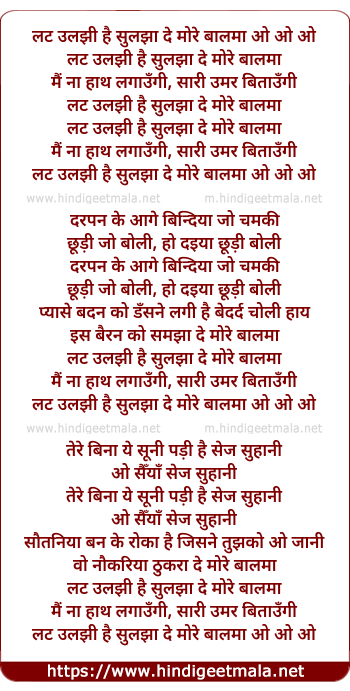 Lyrics of Lat Ulajhi Hai Sulajhaa De More Baalamaa - लट उलझी है सुलझा दे मोरे बालमा