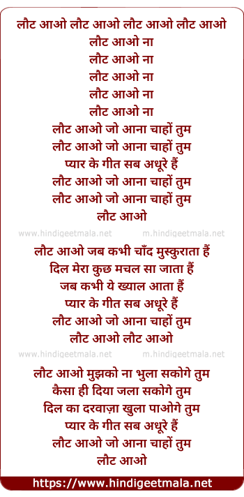 Lyrics of Laut Aao Jo Aana Chaaho Tum - लौट आओ लौट आओ लौट आओ लौट आओ