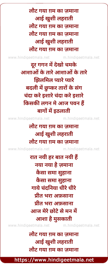 Lyrics of Laut Gayaa Gam Kaa Zamaanaa - लौट गया ग़म का ज़माना