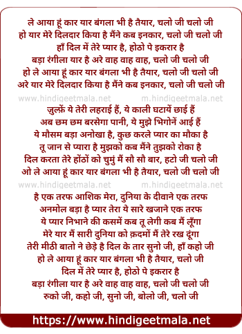 le aaya hu car yaar bangala bhi hai taiyaar, chalo ji chalo ji