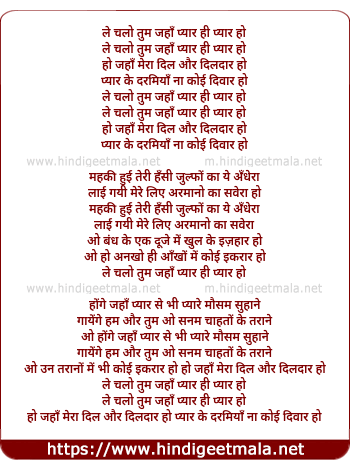 Lyrics of Le Chalo Tum Jaha Pyar Hi Pyar Ho - ले चलो तुम जहाँ प्यार ही प्यार हो