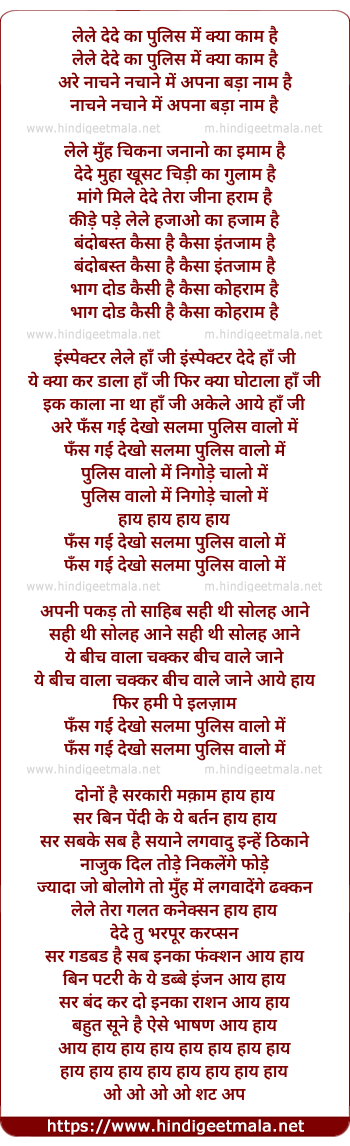 Lyrics of Le Le De De Ka Police Me - लेले देदे का पुलिस में