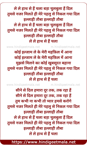 Lyrics of Le Le Haath Se Chala Bada Chulbula Hai Dil - ले ले हाथ से हैं चला बड़ा चुलबुला हैं दिल
