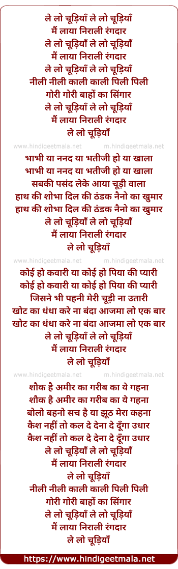 Lyrics of Le Lo Chudiya - ले लो चूड़ियाँ