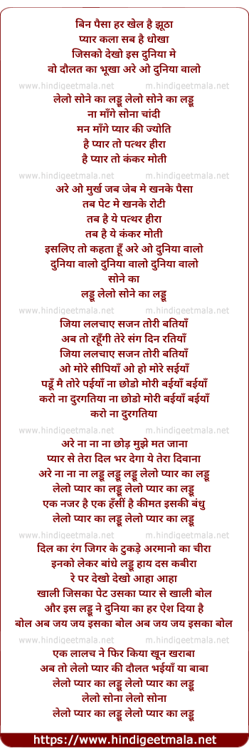 Lyrics of Le Lo Sone Ka Laddu (Version 1) - ले लो सोने का लड्डू