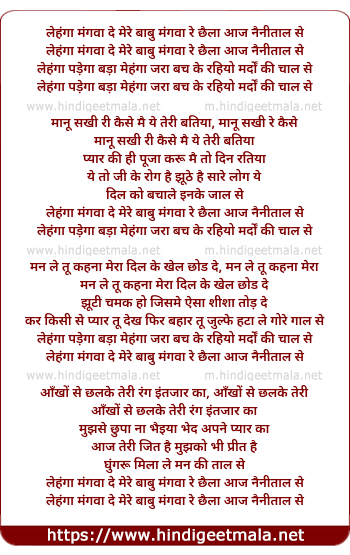 Lyrics of Lehnga Mangava De Mere Babu - लेहंगा मंगवा दे मेरे बाबु