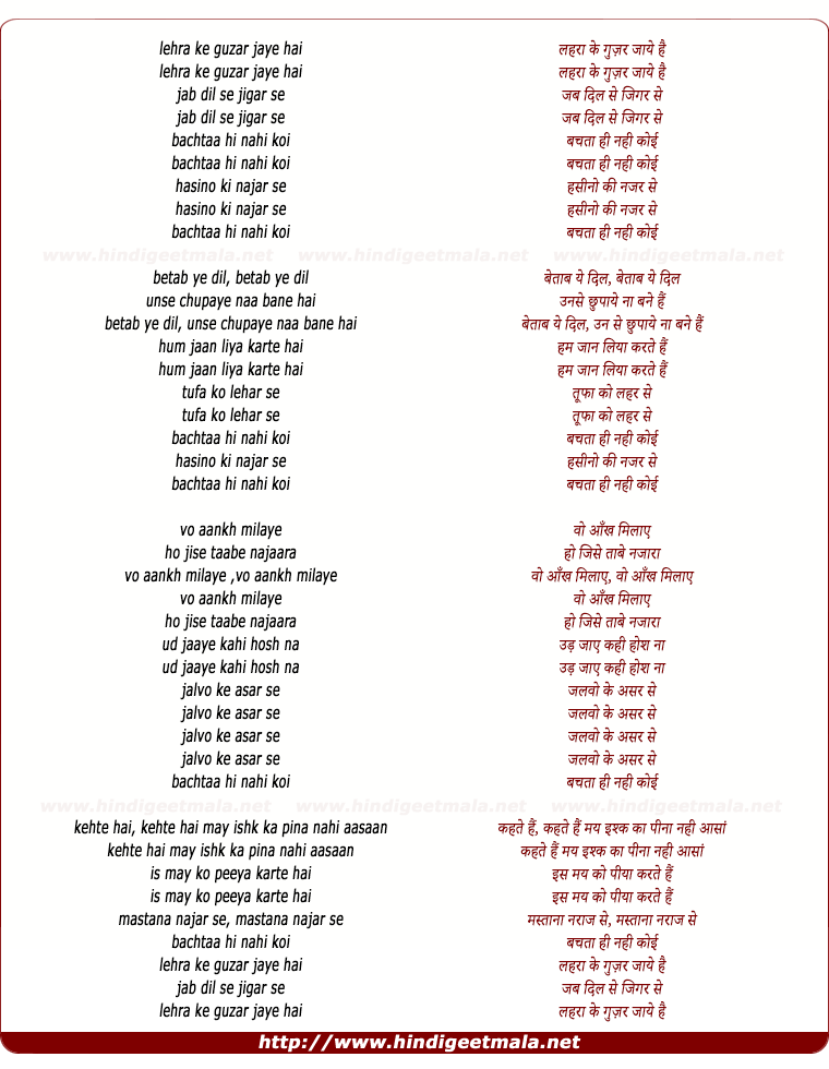 Lyrics of Lehra Ke Guzar Jaye Hai - लहरा के गुज़र जाये है