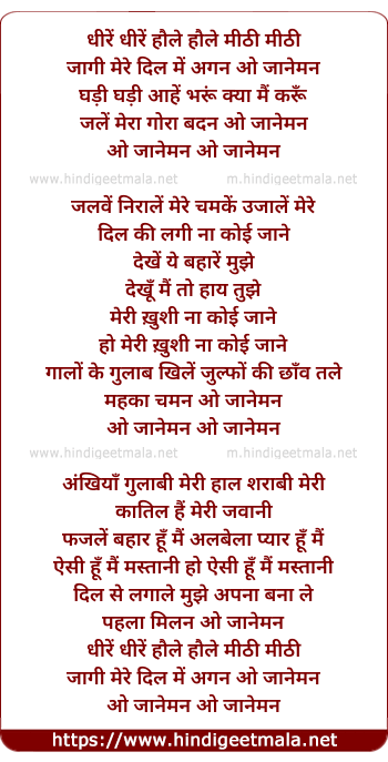 Lyrics of Dheere Dheere Haule Haule - धीरें धीरें हौले हौले