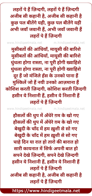 Lyrics of Lehron Pe Hai Zindagi - लहरों पे हैं ज़िन्दगी, लहरों पे हैं ज़िन्दगी